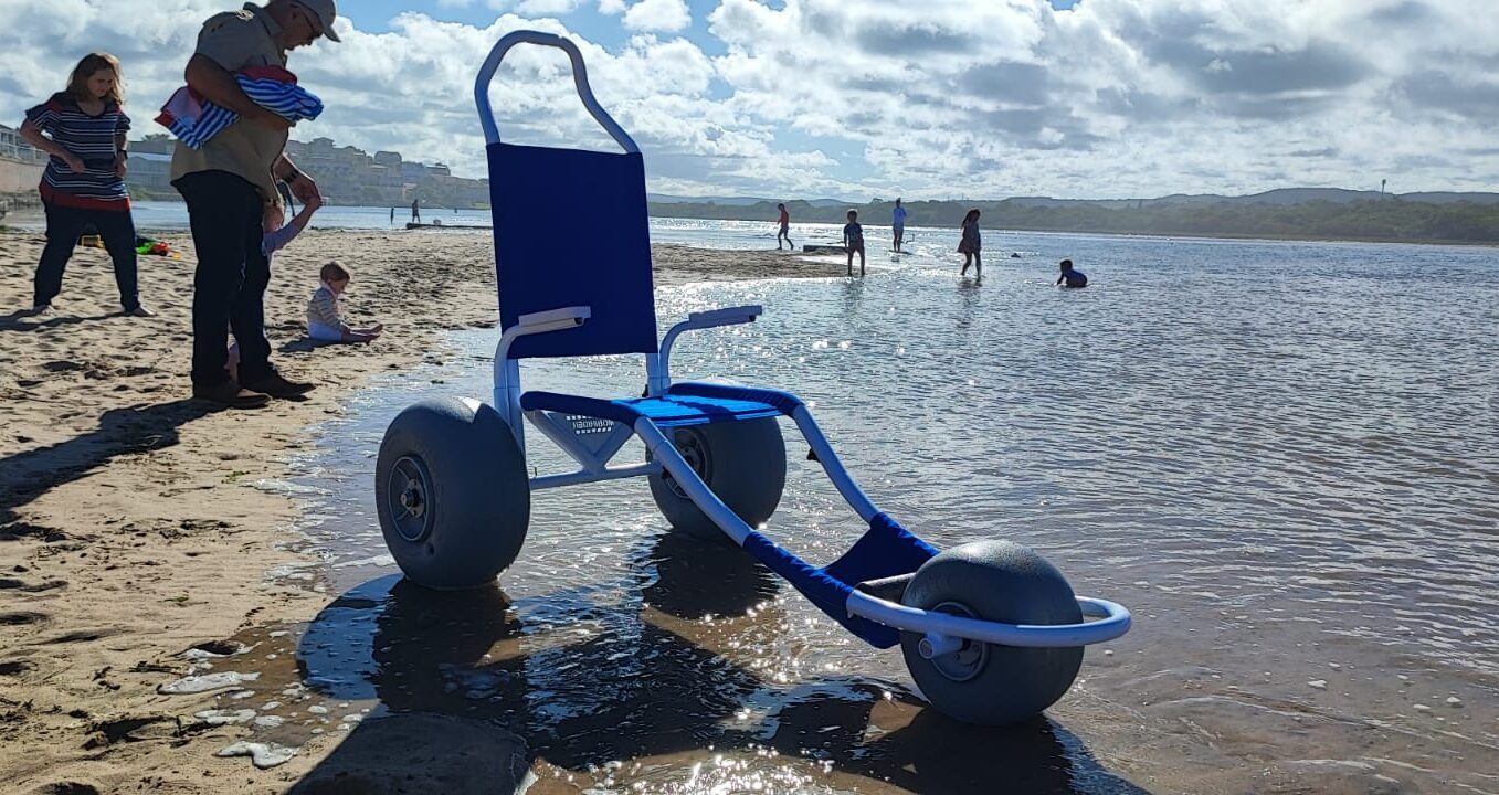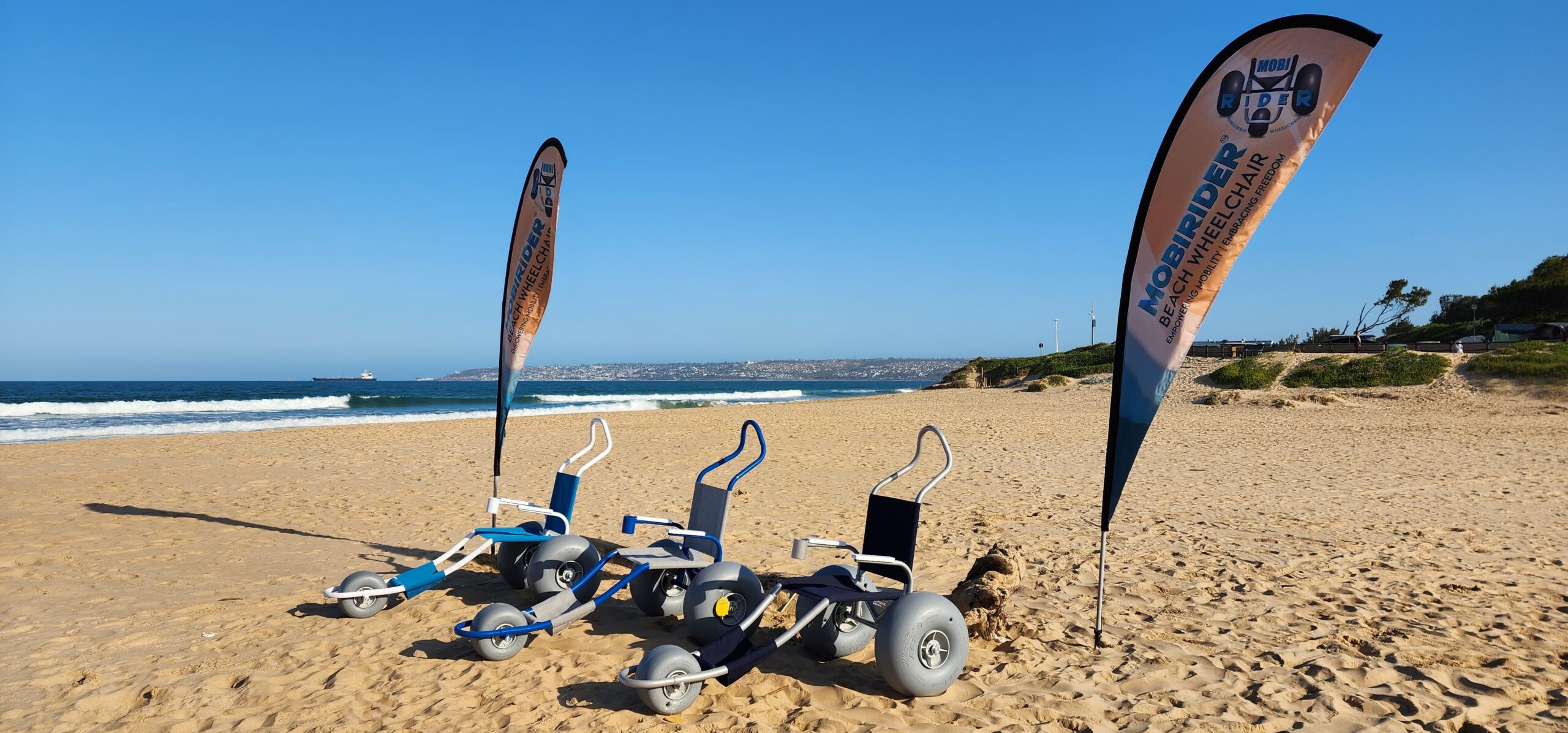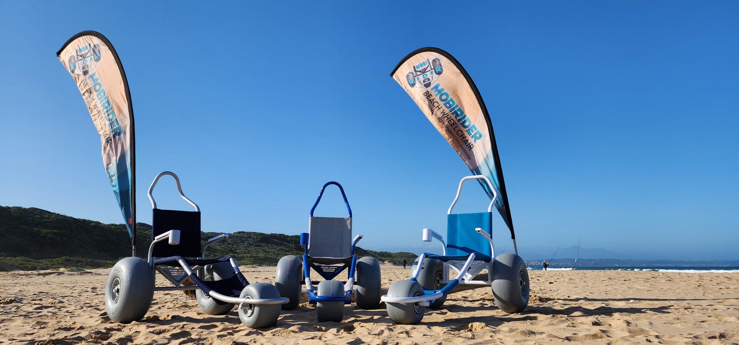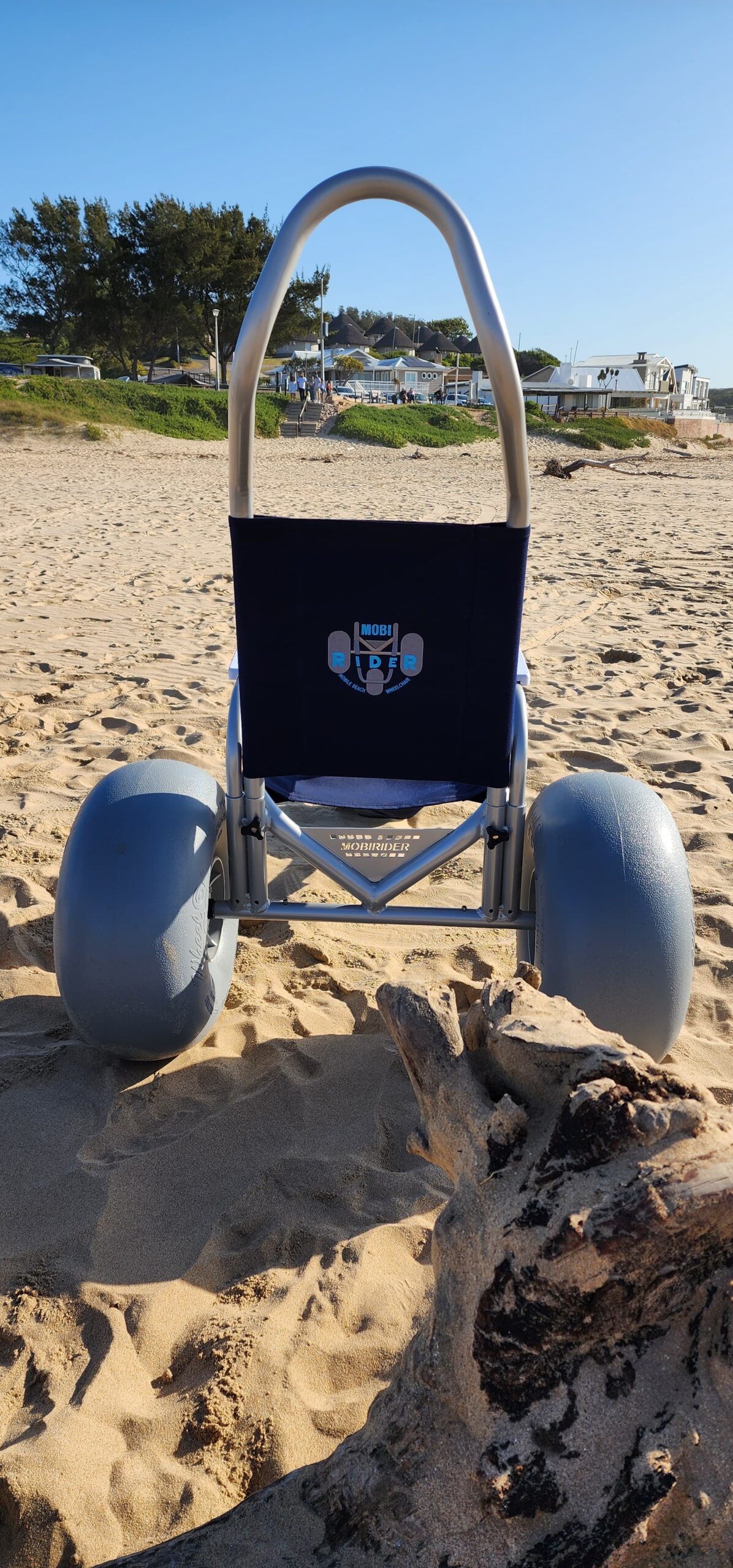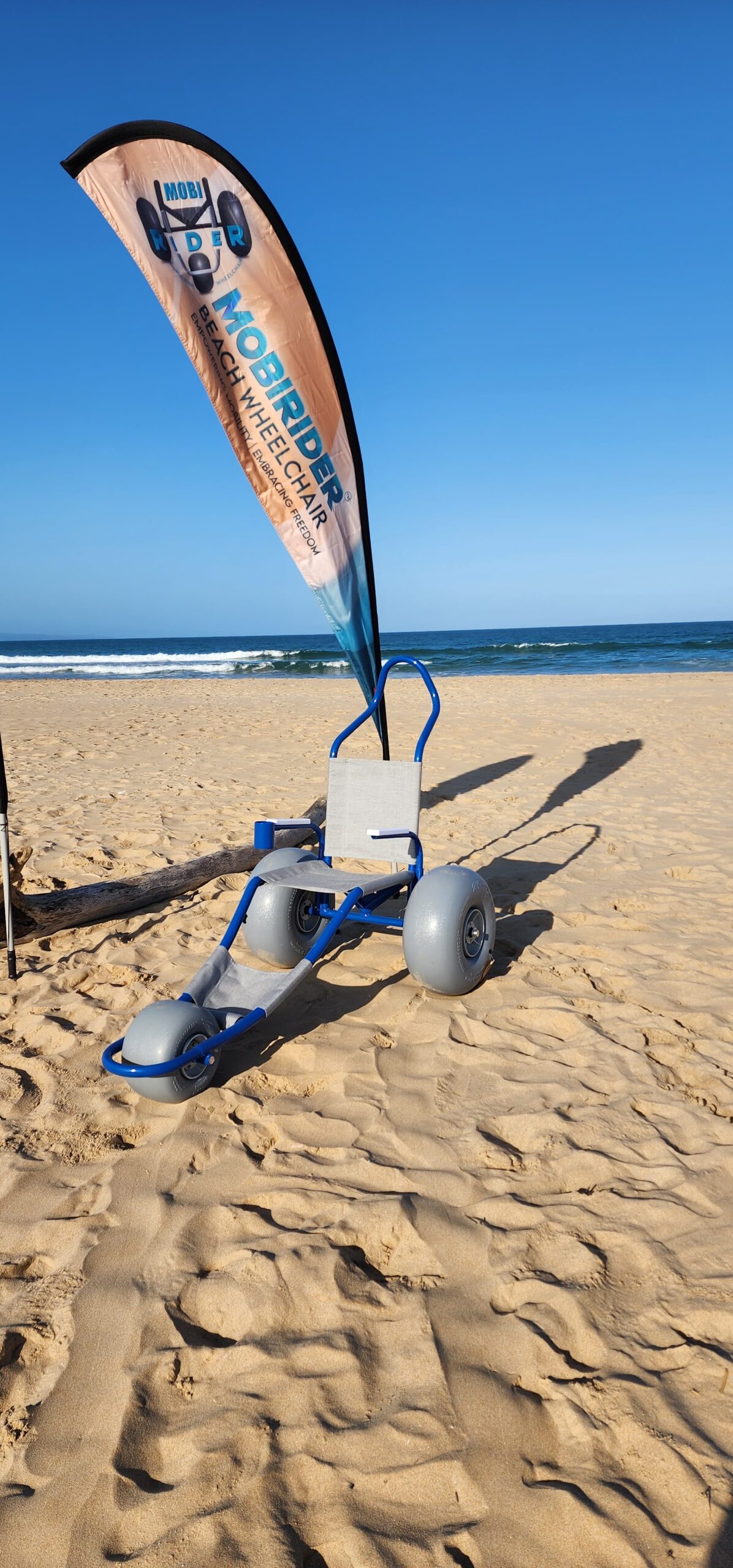 • Mobirider silver beach wheelchair at Hartenbos Mossel bay
