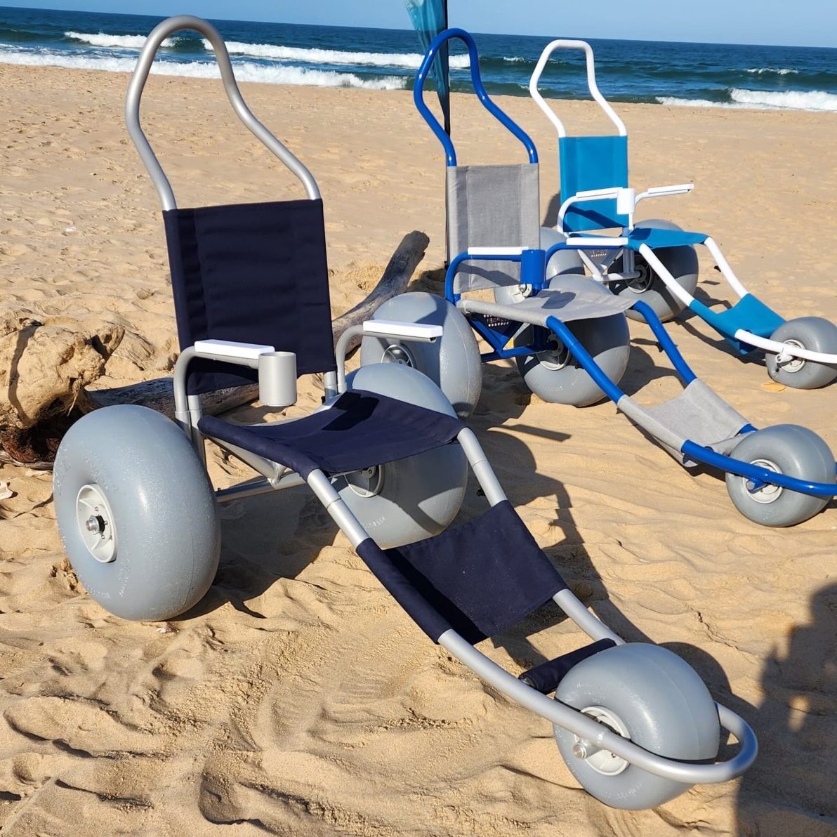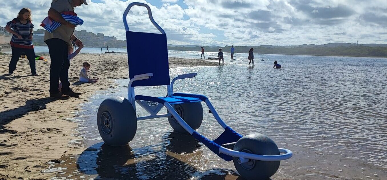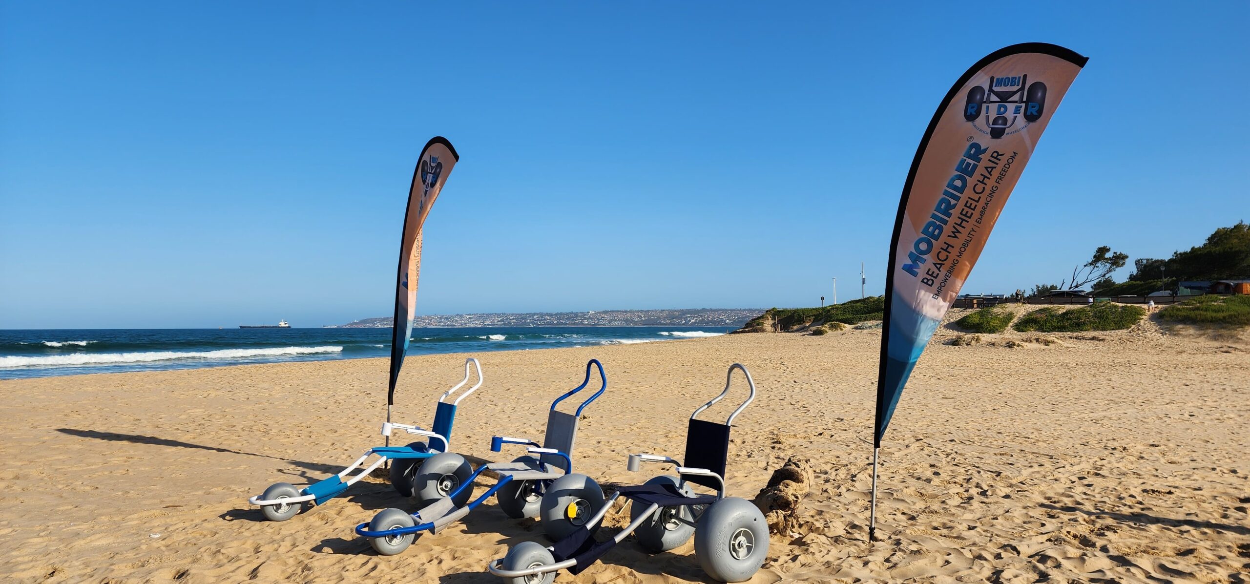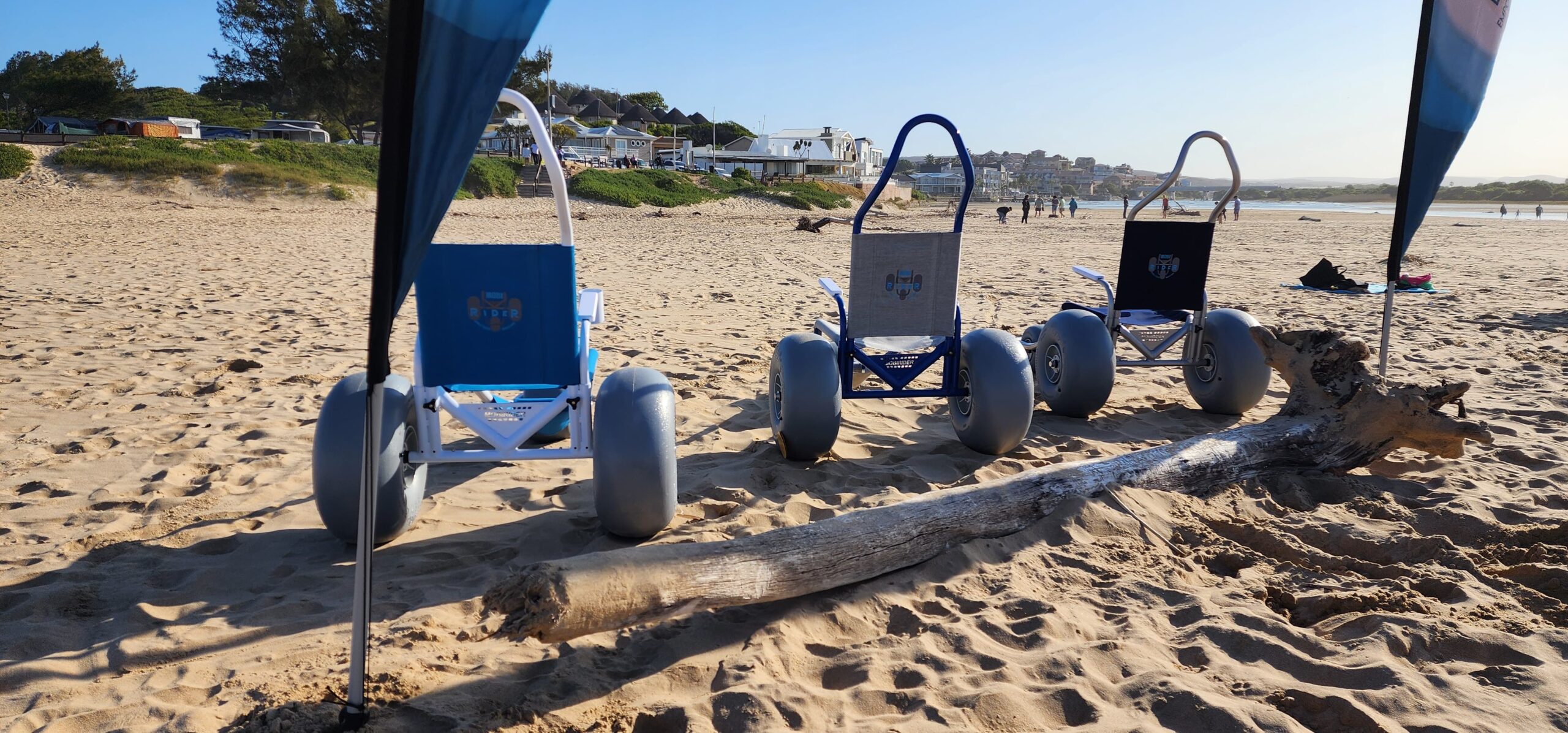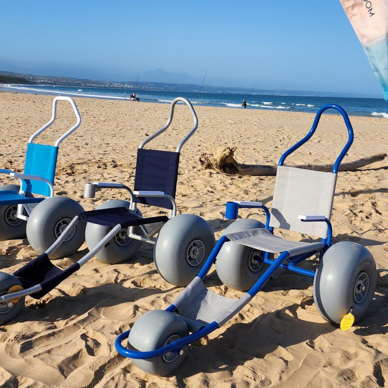 • Mobirider silver beach wheelchair at Hartenbos Mossel bay