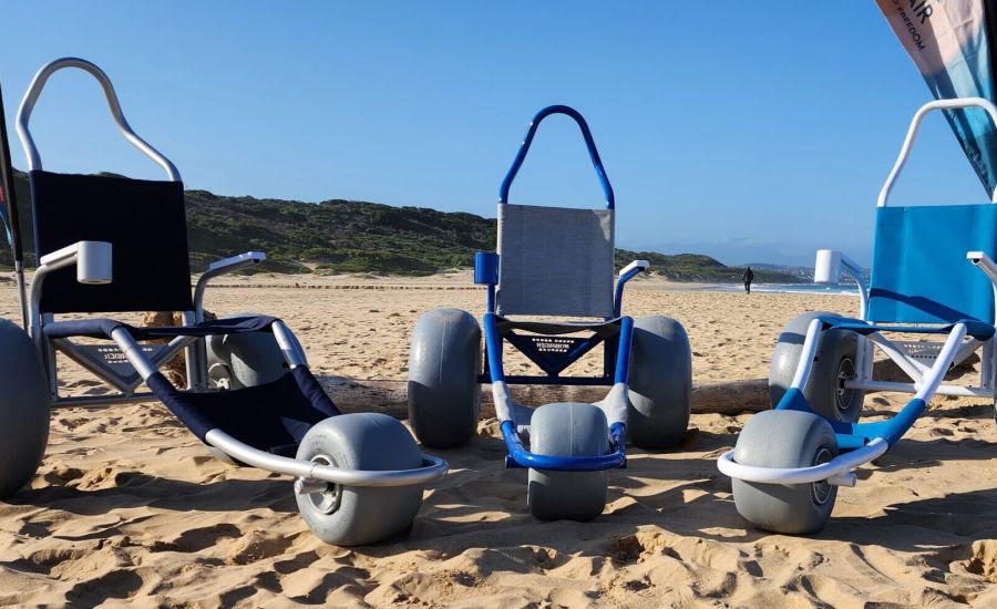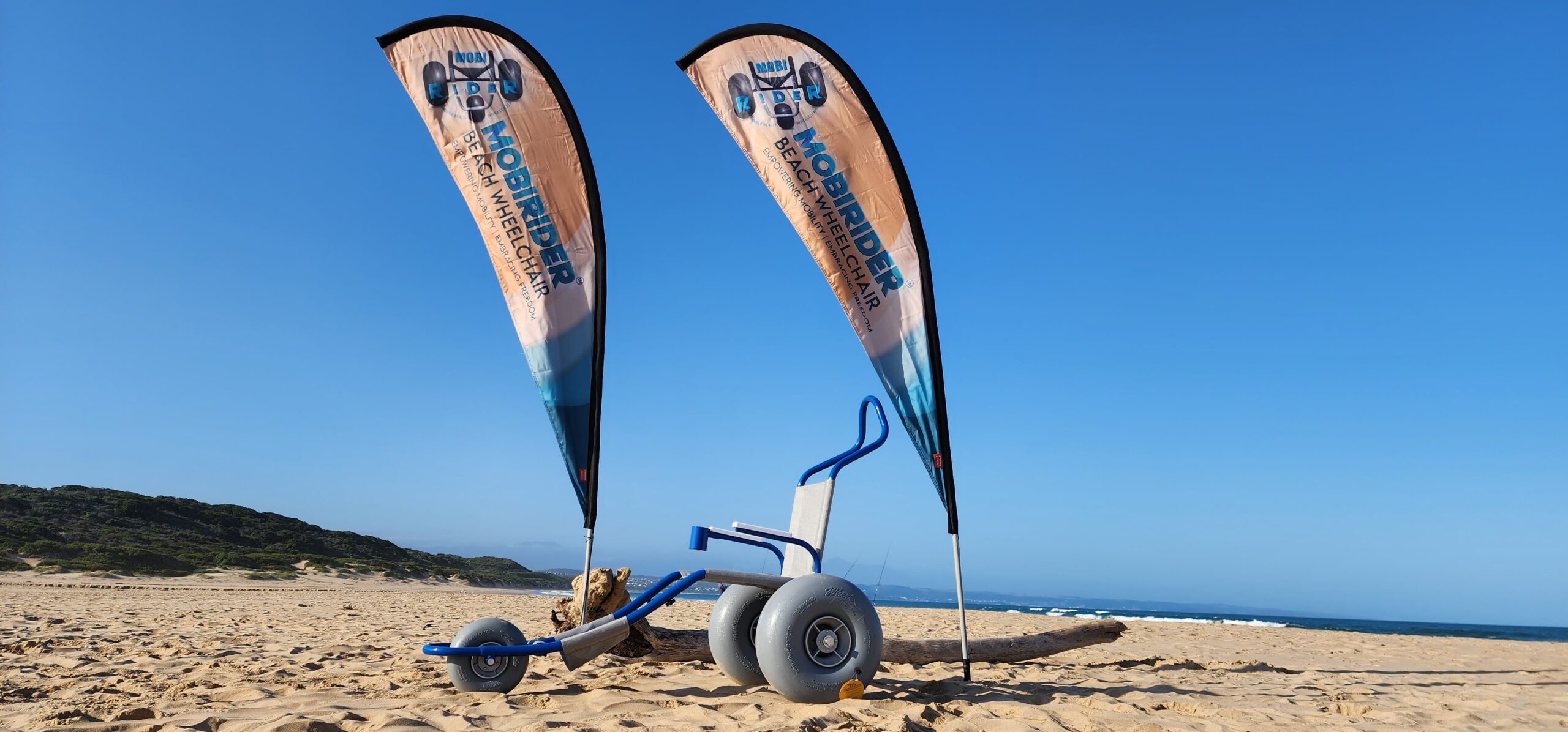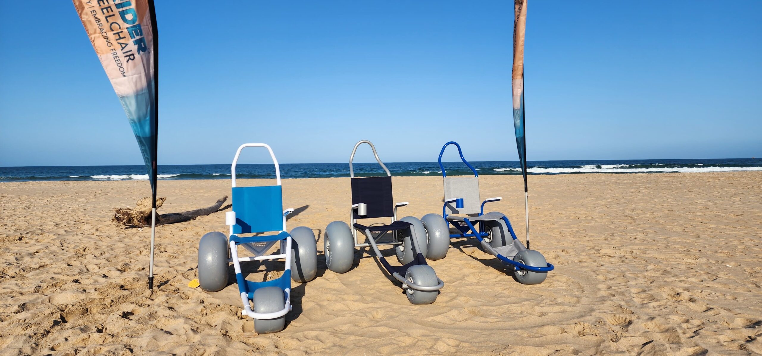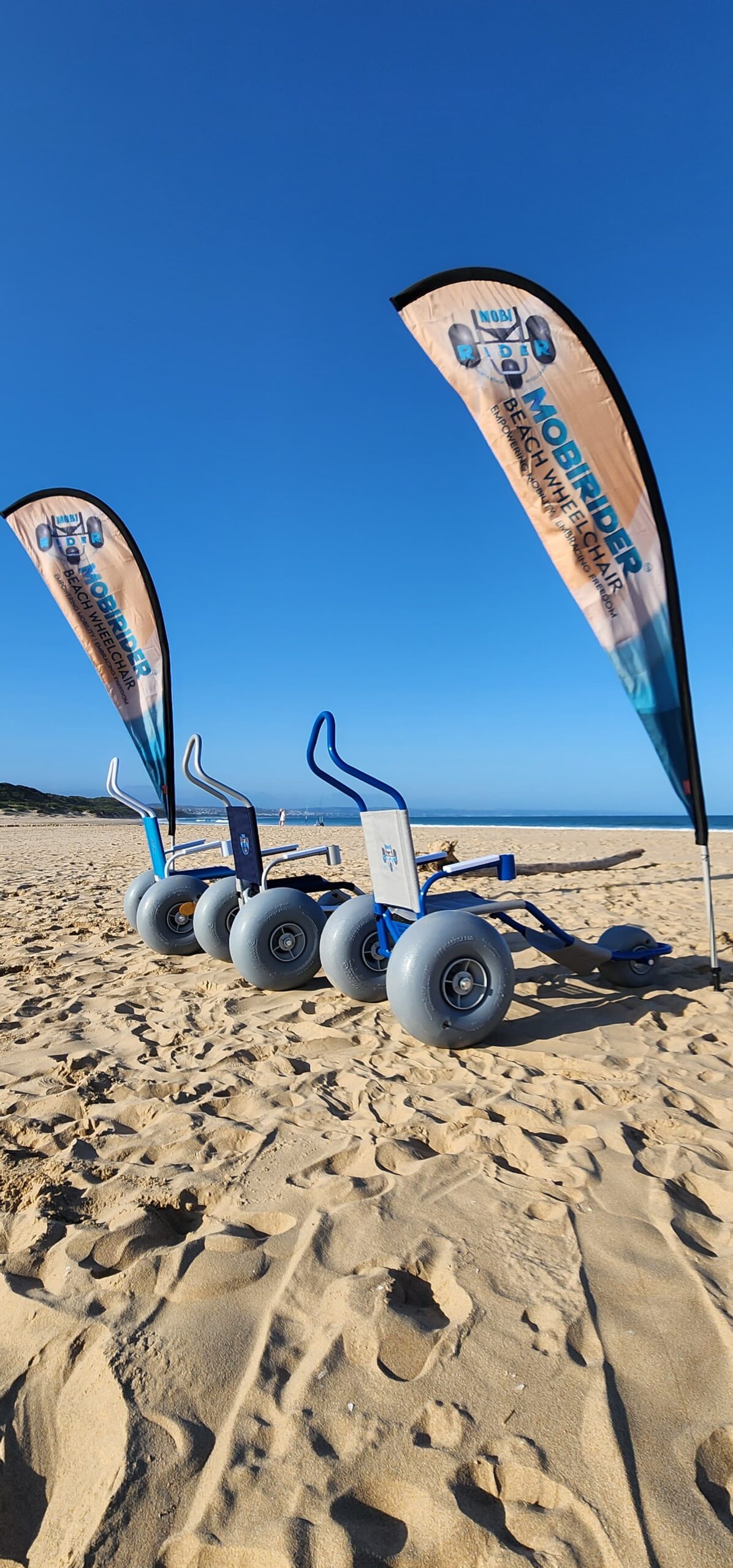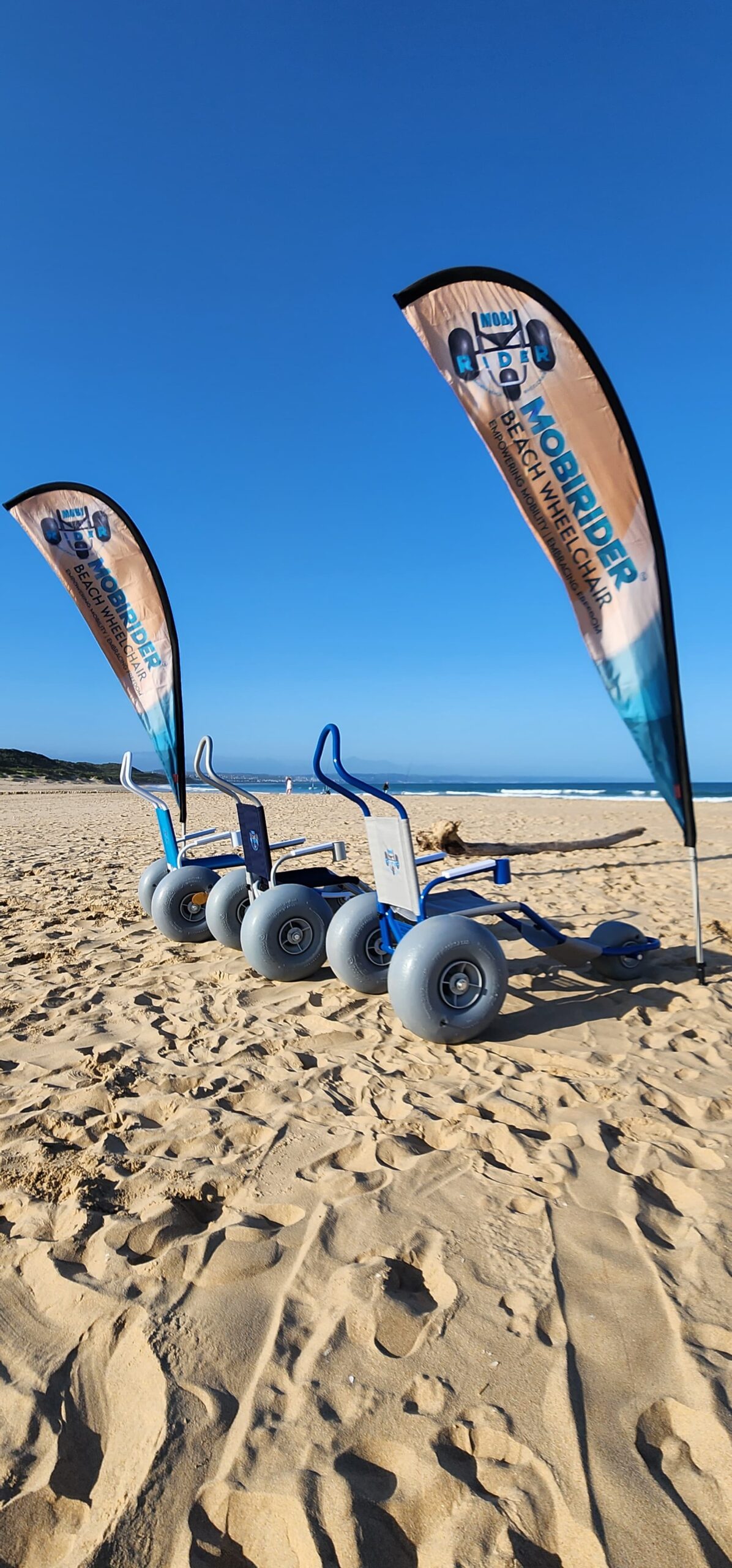 • Mobirider white beach wheelchair at Hartenbos Mossel bay